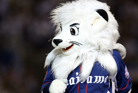 ライオンズのマスコットキャラクターの「レオ」「ライナ」と公式パフォーマー「bluelegends」がQVCマリンに来場します!!