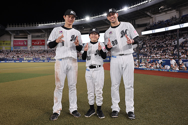 千葉ロッテマリーンズは、社会貢献プロジェクト「MARINES LINKS」の活動として、認定NPO法人Being ALIVE Japanが運営する「TEAMMATES(チームメイツ)」事業に参画しています。長期治療を必要とする子どもの自立支援とコミュニティ創出を支援するため、マリーンズの選手たちが中心となり、パートナー企業である株式会社リンクス・ビルドと共に取り組んでいきます。今年は中学1年生の山崎 悠成(やまざき ゆうせい)くんが入団しました。