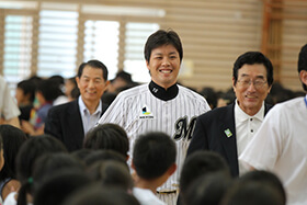 12日に長男が誕生しパパになったばかりの藤岡選手からは、『大事だと思っているのは親への感謝の気持ち、そして自分が父親になってみて感謝してもらえるように子供を育てていきたい』と児童にメッセージを送りました。
