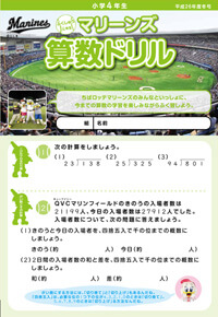 NPO法人「ちば算数・数学を楽しむ会」の製作協力のもと、問題にはマリーンズの選手が登場したり、野球に関する出題があり、楽しみながら勉強ができる内容が満載となっています。