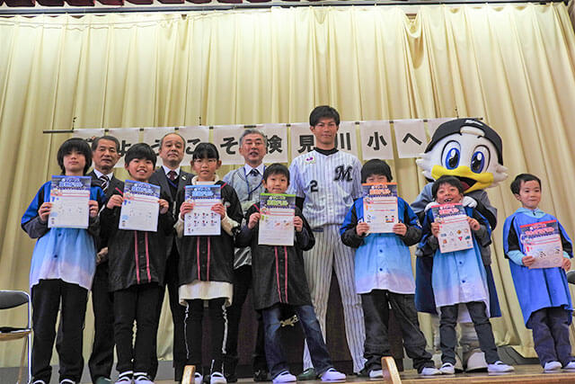 千葉ロッテマリーンズは12月に千葉市内全ての市立小学校(国立大学法人千葉大学教育学部附属小学校や特別支援学級を含む)全児童約50,000人に無償配布しました。