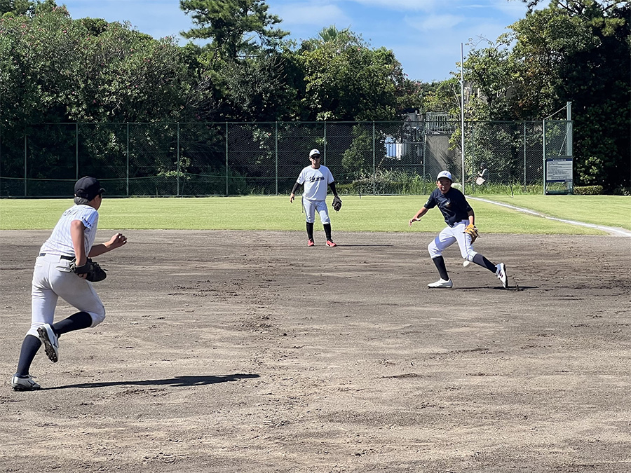 キャッチャーを中心に想定されるプレーの声掛けを事前に行うことを意識して練習しましたが、なかなか指示の声や選手同士の会話が少なく盛り上がりに欠ける練習になってしまった場面がありました。