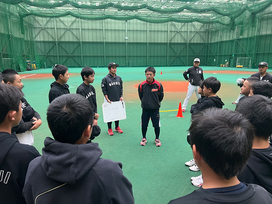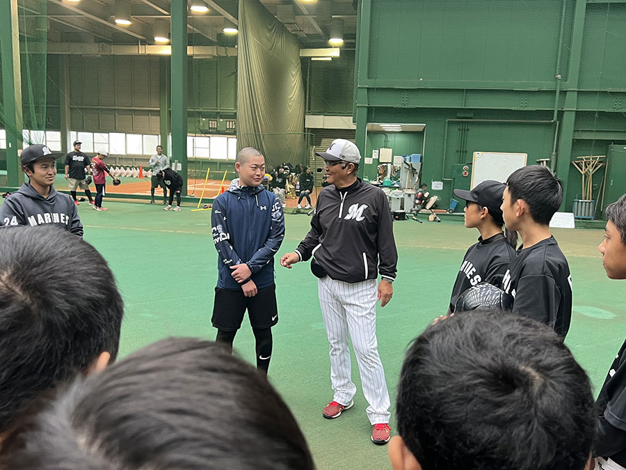 マリーンズジュニア2022メンバーの西川翔真くんと松浦夢羽門くんが応援に駆けつけてくれました。西川くんからは「残り2か月間できることは限られているけれど、できることはしっかりとやって悔いのないようにしてください。応援しています。」と激励の言葉をもらいました。