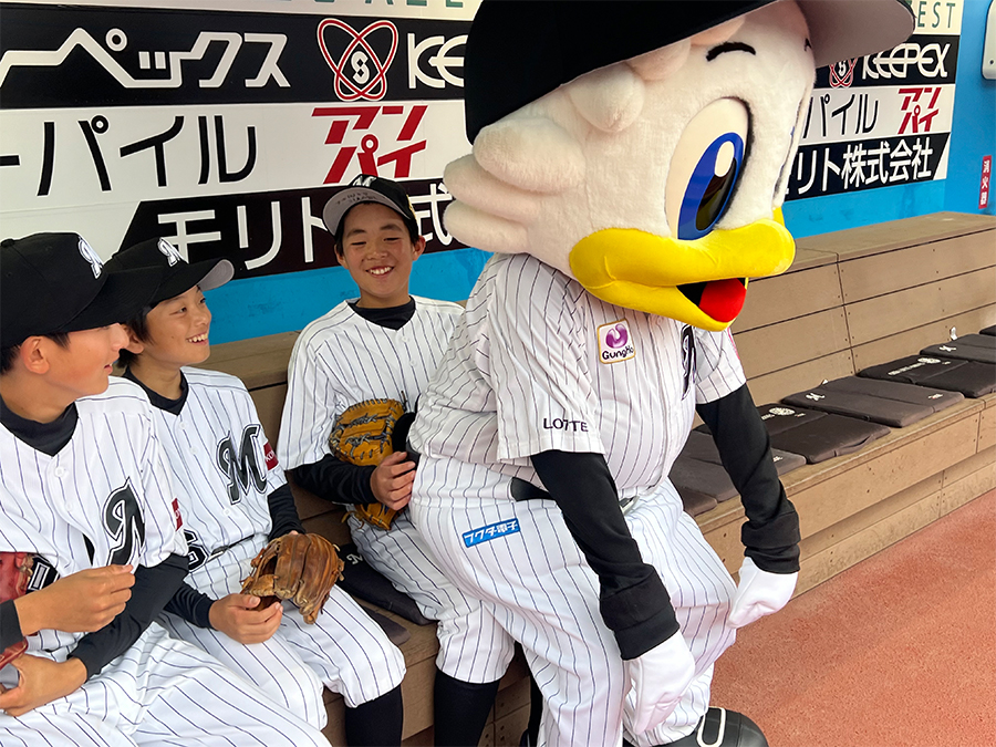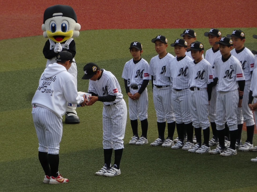 壮行会では、マリーンズジュニアOBの池田来翔選手にご協力をいただき、シートノックを行いました。