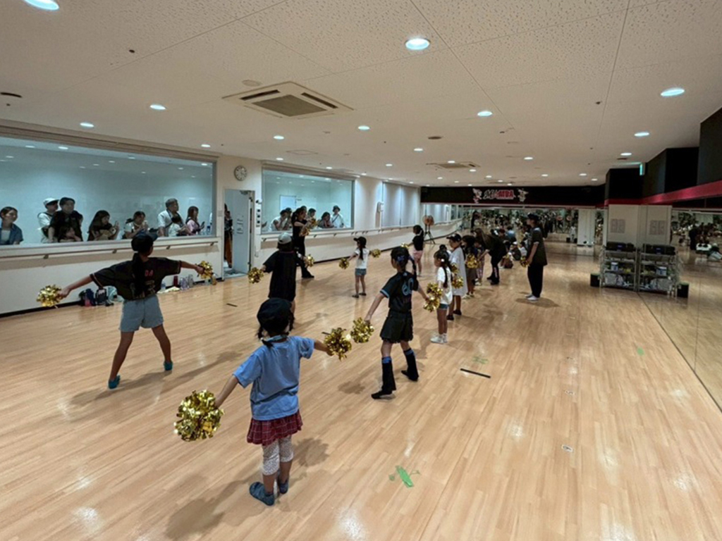 フィールドダンス体験では、子どもたちがポンポンを持って楽しそうに踊る姿が印象的で、グラウンドの開放感と相まって笑顔が溢れる時間となりました。