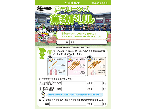 2018.12.192018年12月「マリーンズ算数ドリル」第23回無償配布