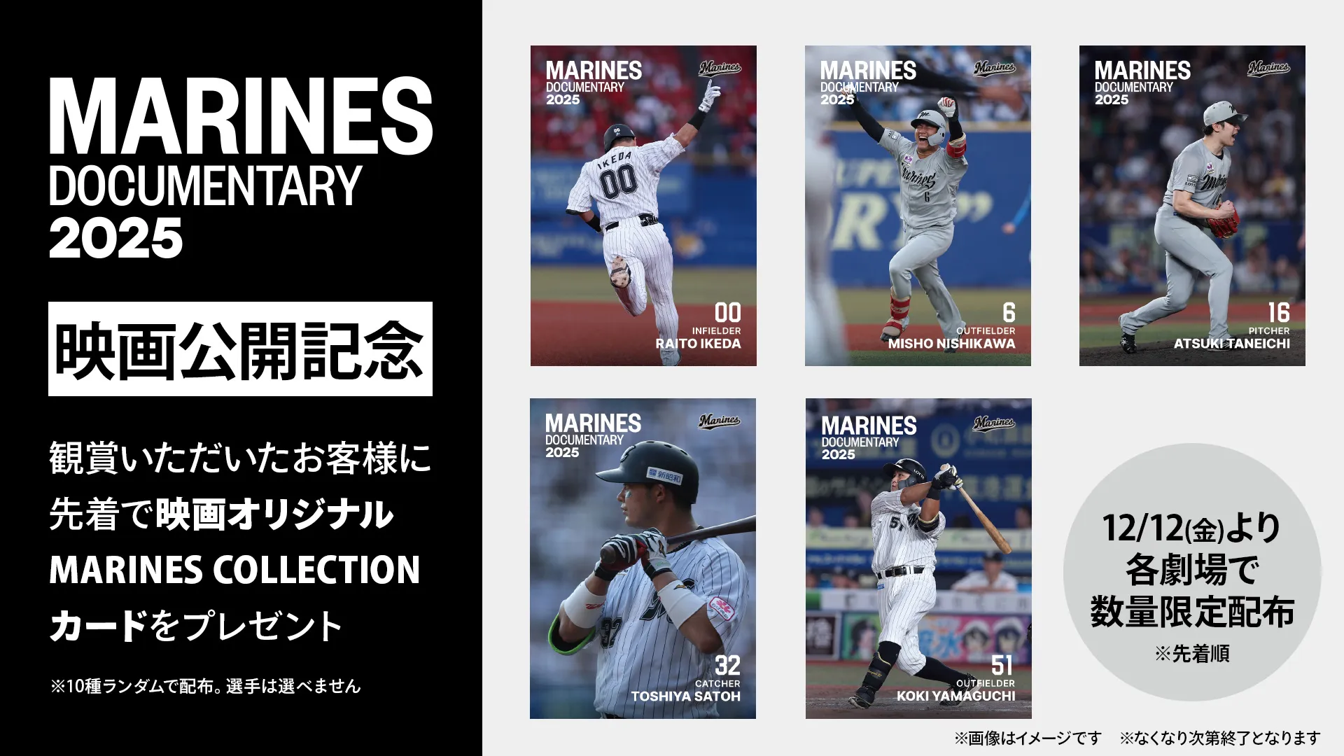 ご縁があり、マリーンズのドキュメンタリー映画を監督することになりました。憧れだったプロ野球選手たちは、ずっと「人生の勝者」だと思っていました。けれどこの一年、努力を重ねて報われず、悩み、苦しみながら進む姿を見て、『プロ野球選手も同じ人間なんだ』と、当たり前のことに改めて気付かされました。マリーンズファンの皆さんはもちろん、なにかに負けたり、挫折した経験がある人たちにまでこの映画が届いたら、本当に嬉しいです。志真健太郎(しまけんたろう)