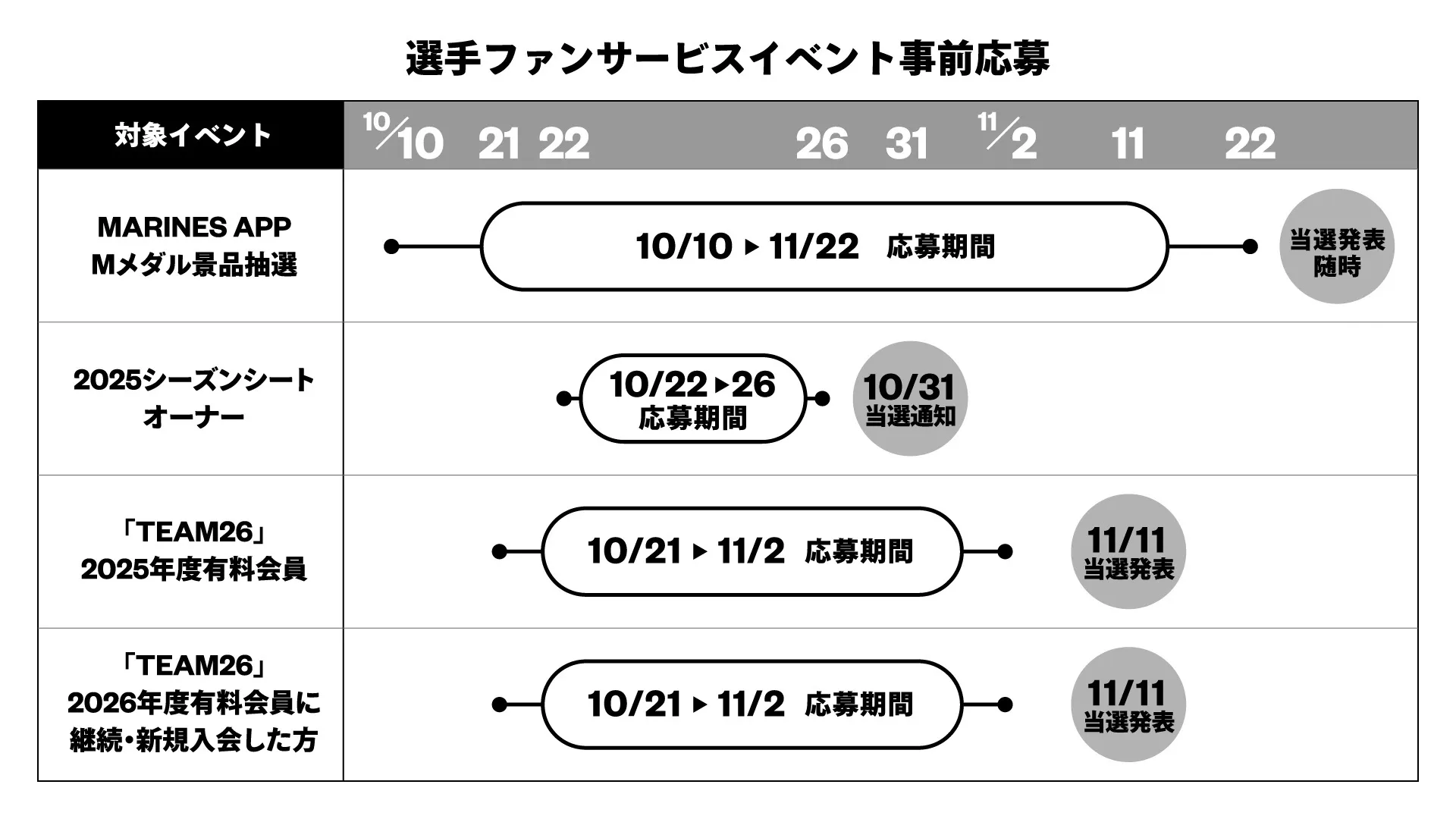 球団公式ファンクラブ「TEAM26」の2025年度有料会員を対象に、選手ファンサービスイベント参加の抽選を行います。