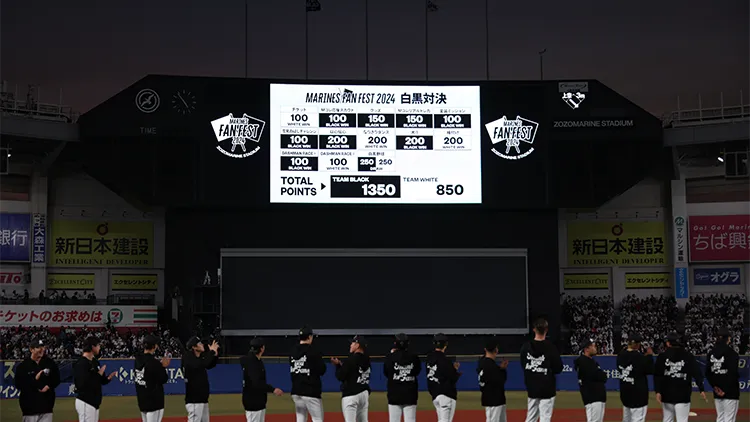 選手が「TEAM WHITE」と「TEAM BLACK」に分かれてさまざまな対決イベントを行う「マリーンズ白黒対決」を開催。