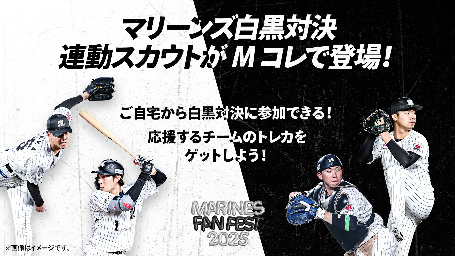 『MARINES COLLECTION』サービス内にて、「MARINES FAN FEST 2025 -TEAM WHITE-」スカウト、「MARINES FAN FEST 2025 -TEAM BLACK-」スカウトが登場! 各スカウトの購入枚数(ダイヤの有償・無償問わず)に応じて、対応するチームにポイントが加算されます。 ご自宅から白黒対決に参加できるチャンス! 詳細はMARINES COLLECTION内でチェックしてください。