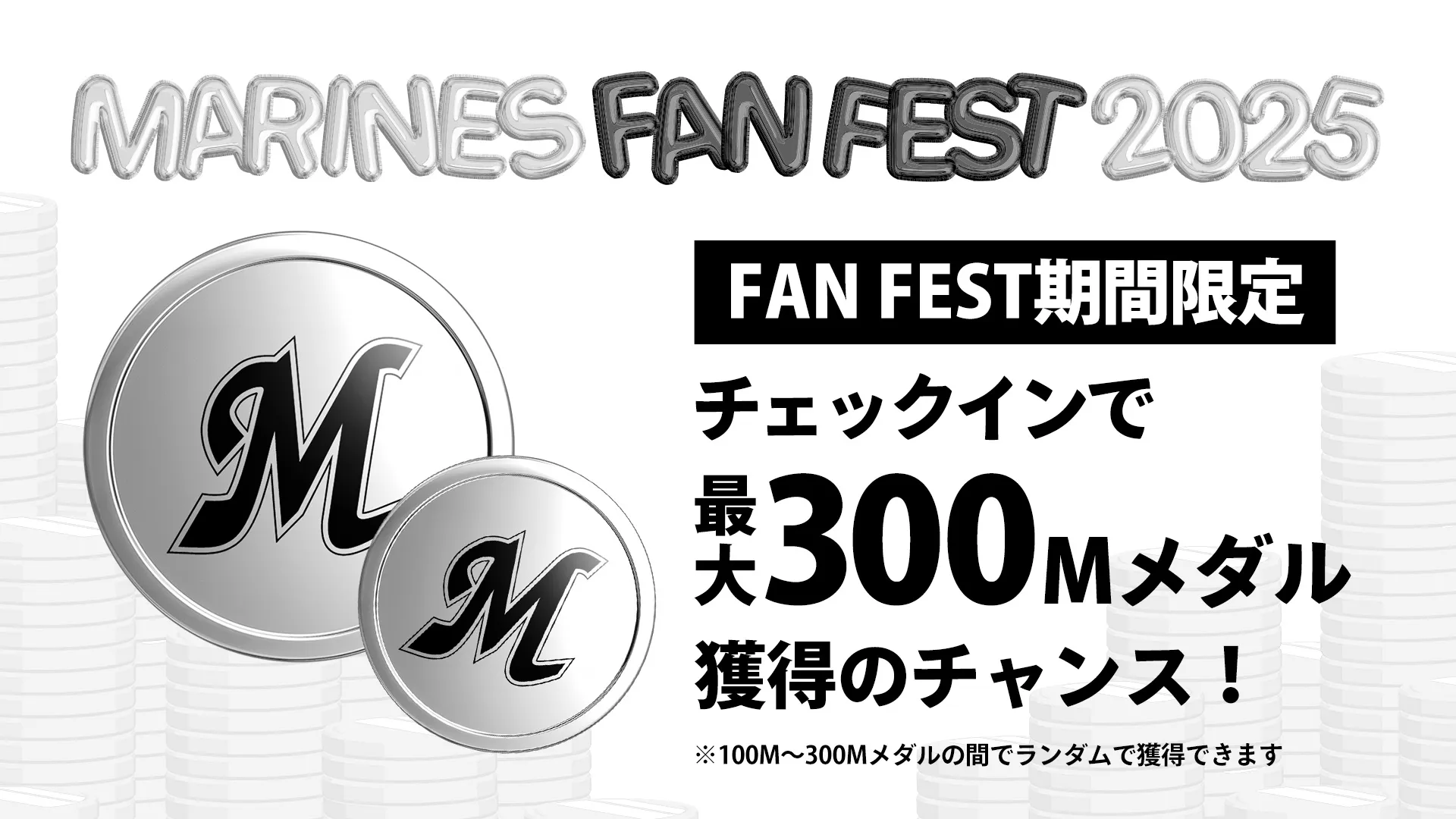 「MARINES FAN FEST 2025」当日にチェックインを開催!チェックインすると「FAN FEST」開催日限定で、100~300Mメダルがランダムで獲得できます!この機会にぜひご参加ください。
