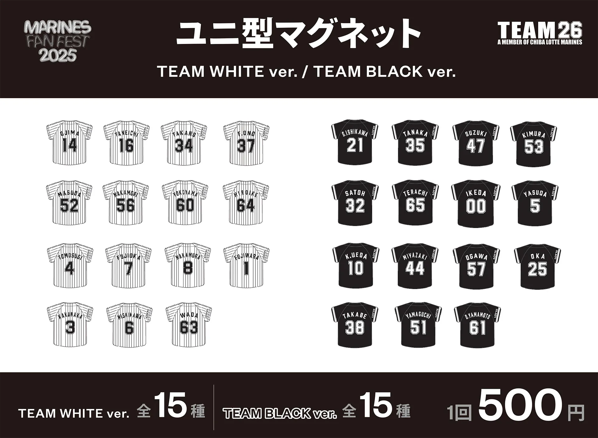 当日は、球団公式ファンクラブ「TEAM26」2026年度の入会受付を行うほか、マリーンズ白黒対決に連動した