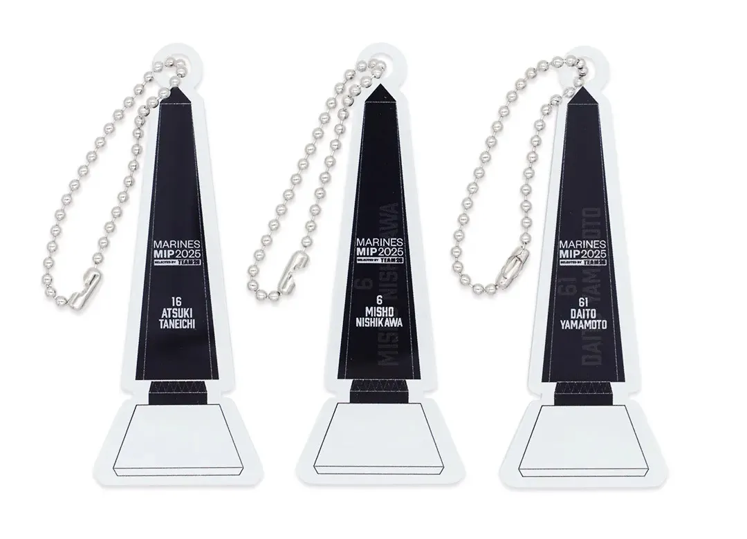 Player(MIP)」投票の結果、投手部門に種市篤暉投手、野手部門に西川史礁選手、特別賞に山本大斗選手の3選手が2025年マリーンズMIPに選ばれました。選出されたMIPの3選手は、Mポイント交換アイテムの「MIPトロフィー型キーホルダー」に反映され、TEAM26ブースにて1,000Mptで引き換えが可能です。