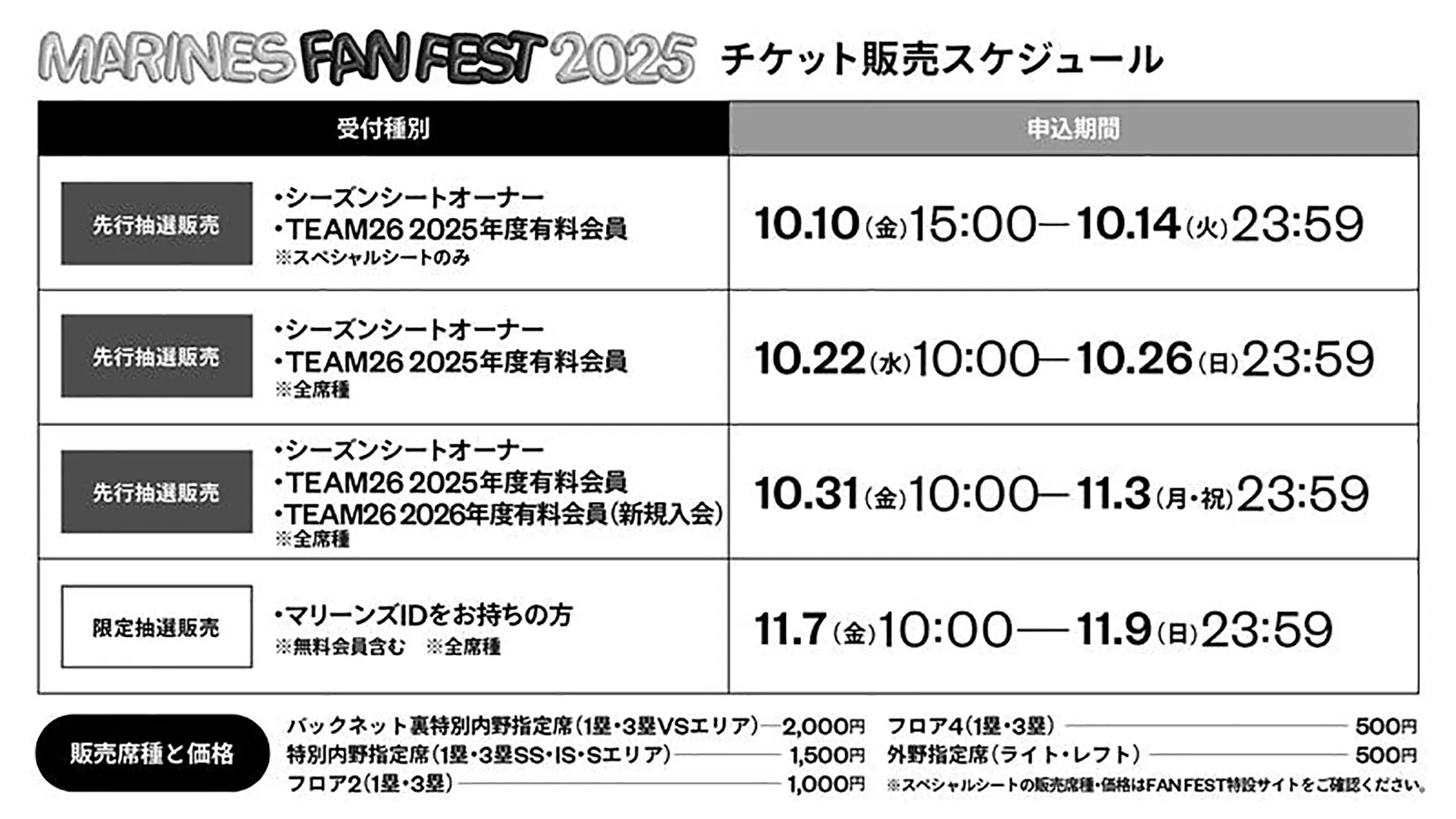 - ※「MARINES FAN FEST 2025」ではフィールドウイング・シートをスペシャルシートとして扱います。