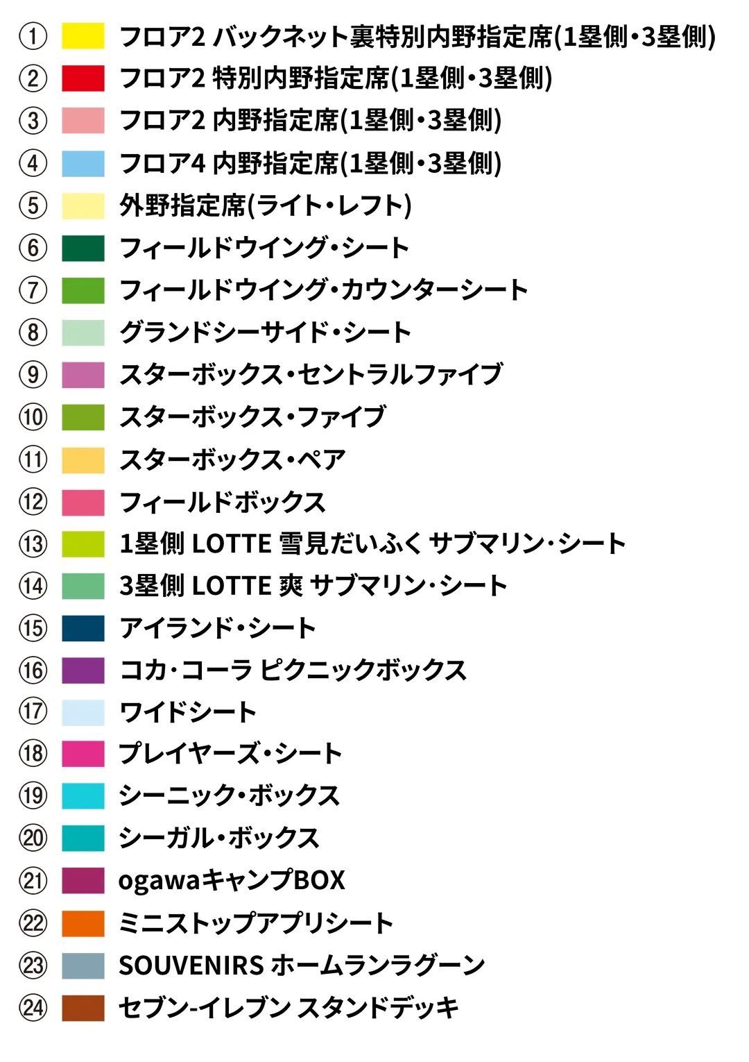 ①フロア2 バックネット裏特別内野指定席(1塁側・3塁側) | 2,000円 | 購入はこちら |