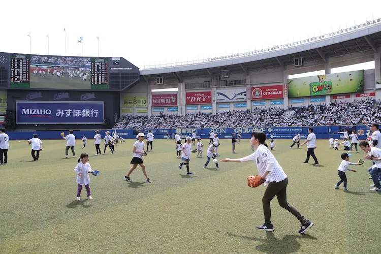 ゴールデンウィークのZOZOマリンスタジアムは、いろいろな“エンジョイ”が体験できるお子さま向けの特別なコンテンツがいっぱい!選手との野球体験会やスタジアムでのさまざまなお仕事体験、グラウンドの中でキャッチボールができるチャンスも。さらに、球場外周ではグルメフェスも同時開催!ゴールデンウィークはZOZOマリンスタジアムで思いっきり遊ぼう。