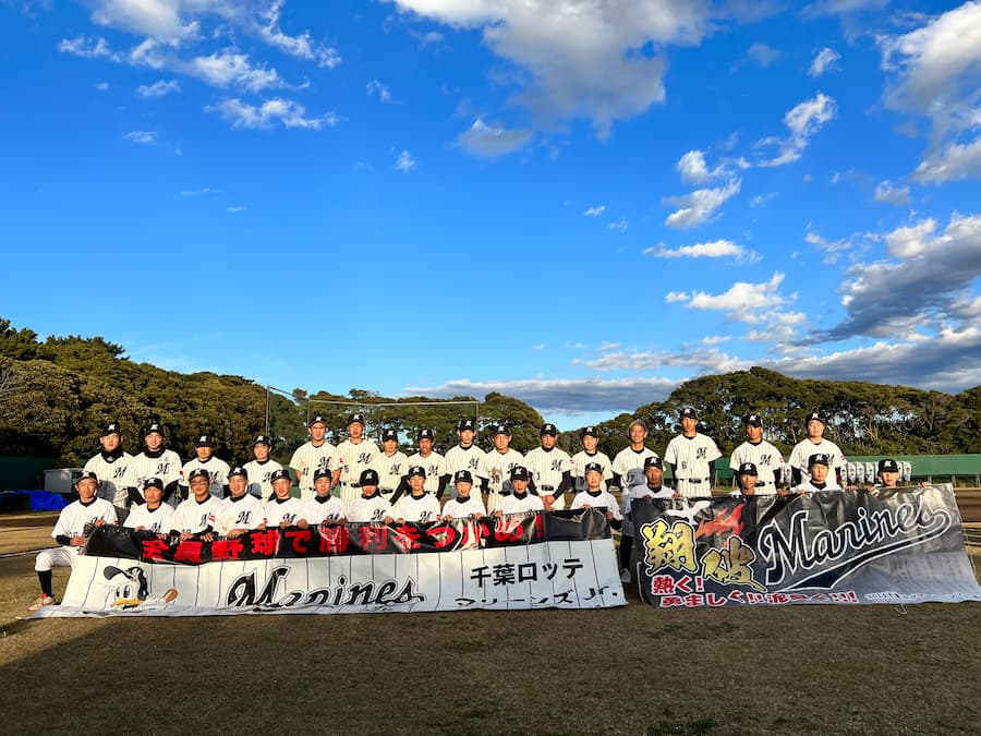 「千葉ロッテマリーンズジュニア」は、小学6年生16名で構成する少年軟式野球チームです。毎年、年末に開催される「NPB12球団ジュニアトーナメント」での優勝を目指して活動します。将来のプロ野球選手を目指すたくさんの選手の参加をお待ちしています。