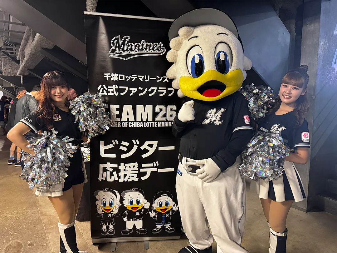 ビジター応援デー当日はマリーンズのマスコットと「M☆Splash!!」も応援に駆けつけます!