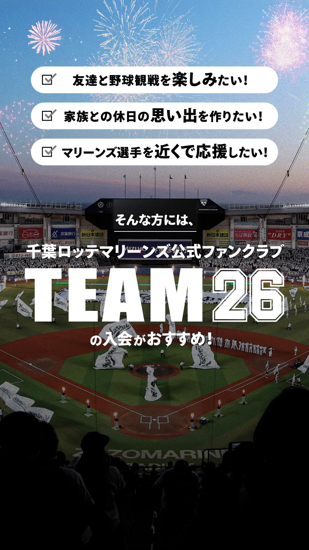 ぜひ、TEAM26へ入会して、ご家族でご来場ください!