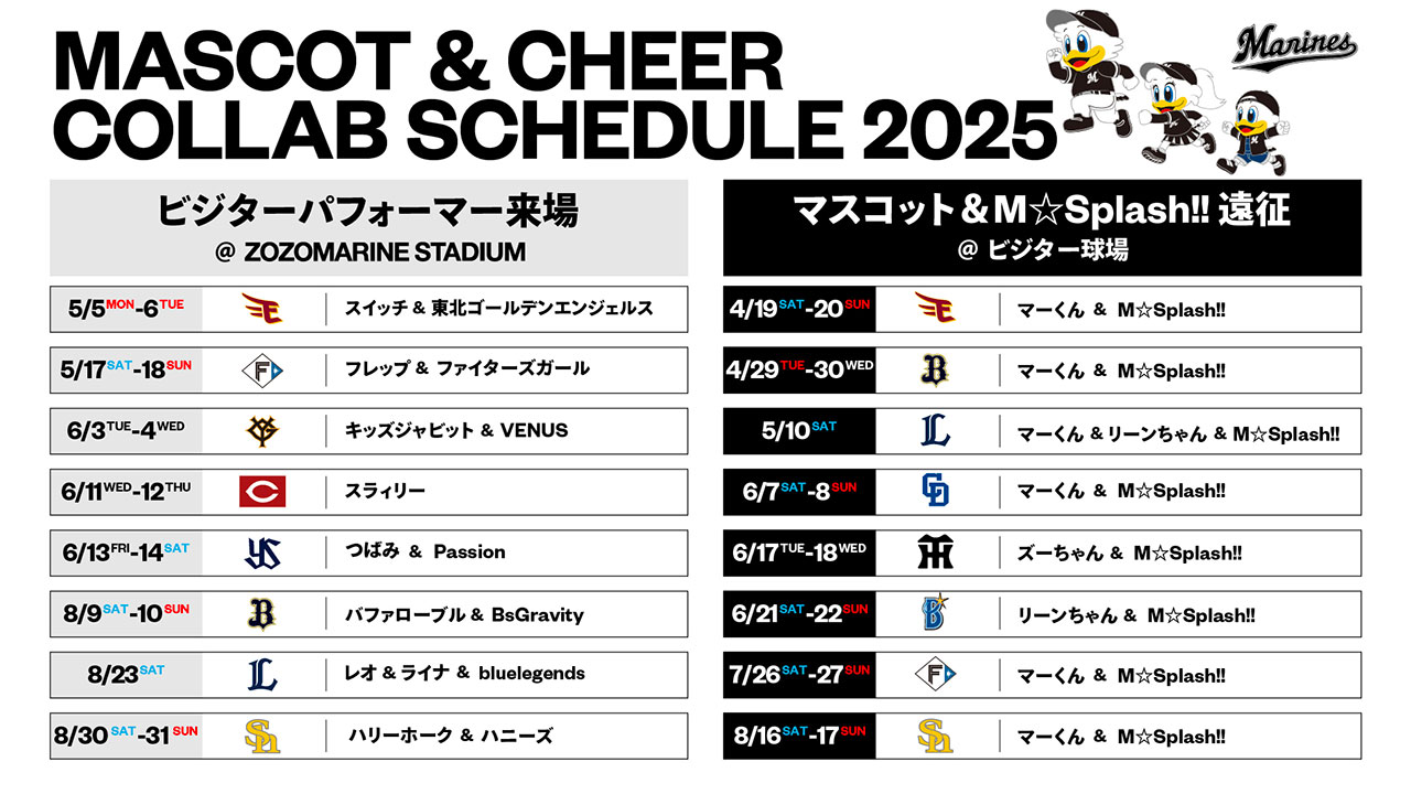 マリーンズを盛り上げることができるように、マリーンズファンのみなさんに球場に来て良かったと思ってもらえるように、1試合1試合全力のパフォーマンスをお届けします!ZOZOマリンスタジアムでたくさんの思い出を一緒に作りましょう!