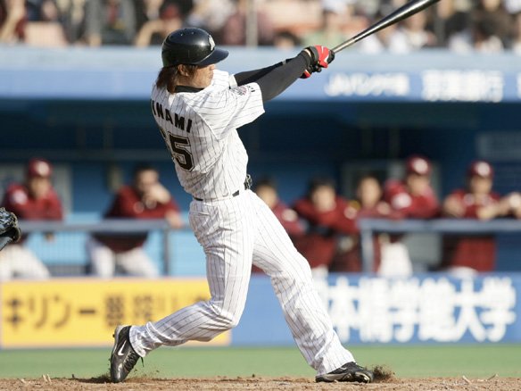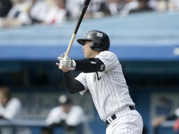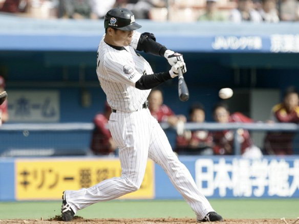 投手 永井 6番 里崎 中安 0-1から弾き返し、クリーンヒット! |