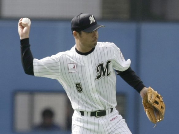 投手 永井 6番 里崎 遊ゴ 2-1から泳がされた三遊間への打球。ショート・渡辺直が回り込んで押さえ、ランニングスロー・・・。 |