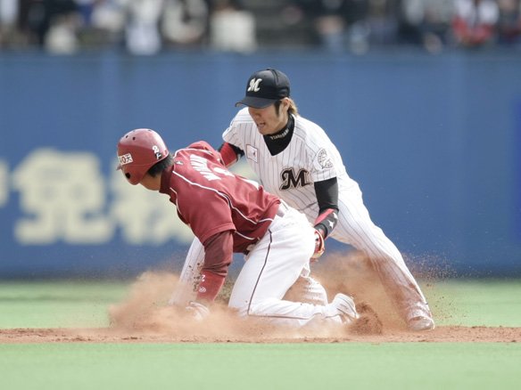 (千葉ロッテ 1塁ランナー・堀→代走・早坂) |