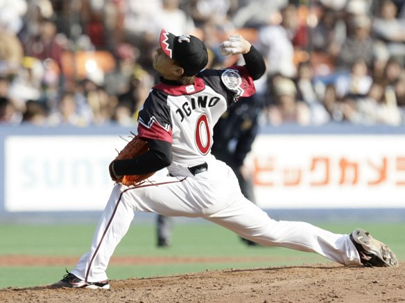 荻野、先頭の松中にヒットを許しましたが、後続をしっかりと抑え、最終回の反撃を呼び込みます! |