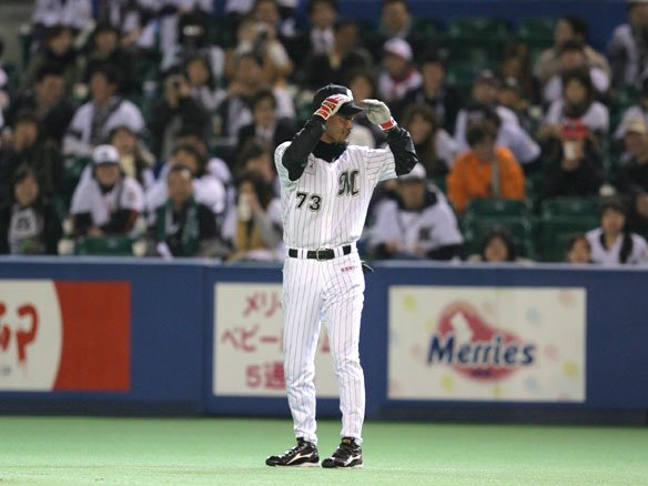 西岡が死球を受けて塁に出ましたが、反撃できず、ゲームセット。 あと1本が出ず、小林宏のマリン連勝記録も8でストップしてしまいました。 |