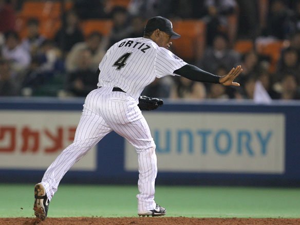 6番 オーティズ 遊併 1球牽制後の初球を捉えきれず、6-4-3のダブルプレーに倒れた・;・。 |