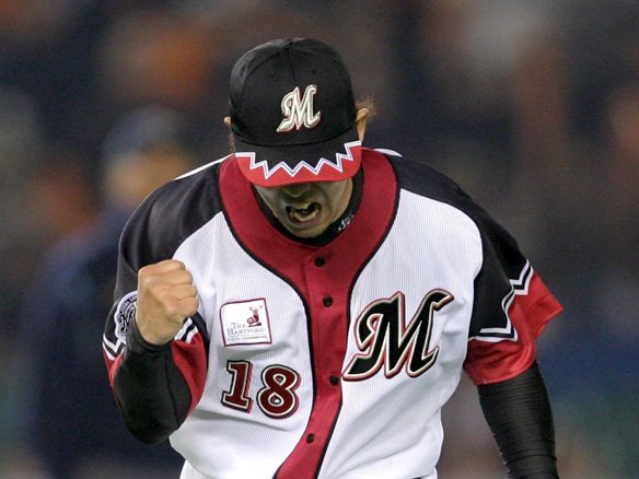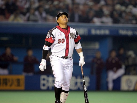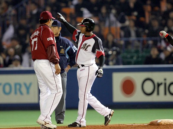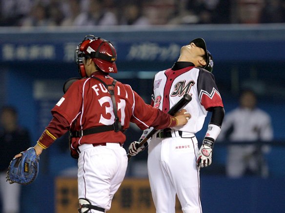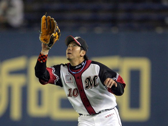 3番 里崎 中飛 1-2からバットの先で振り抜いた右中間への打球。センター・鉄平が前進して捕球。ランナー、進めず。 |