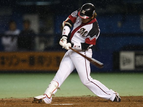 4番 大松 中安 0-1からアウトコース低めへのシュートを弾き返し、里崎に続いた!クリーンヒット! |