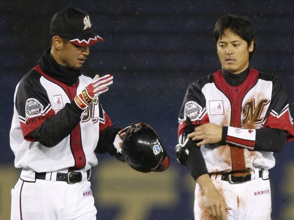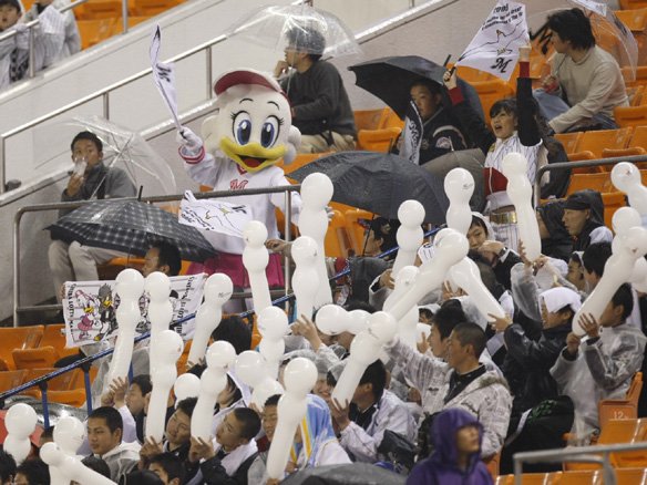 里崎、大松の連打で先制のチャンスを作りましたが、オーティズが三振に倒れ、得点ならず。しかし岩隈を攻略した試合はいつも序盤でのKO。この調子で攻め立てたい! |