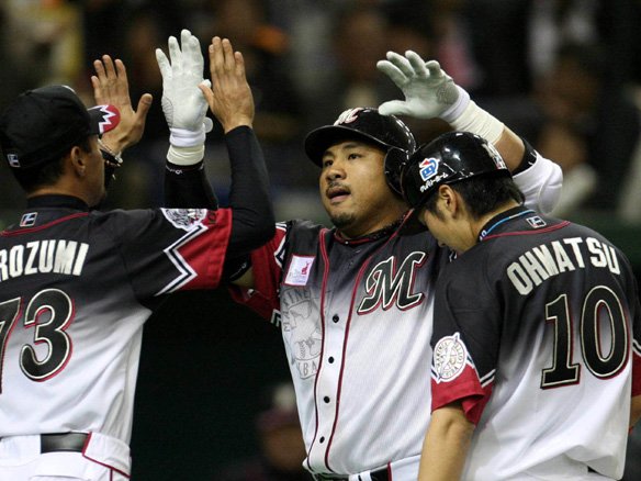 3番 里崎 空三振 2-1からアウトコース低めのストレートを見送ったがストライク・・・。 |