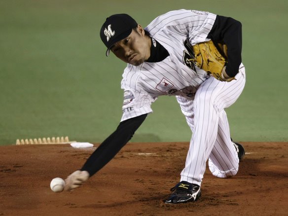 投手 石井一 1死満塁のチャンスに、今江のしぶとい一振りで貴重な追加点を挙げました!2点リードはマリーンズ!後味の悪さは打って吹き飛ばすのみ! |
