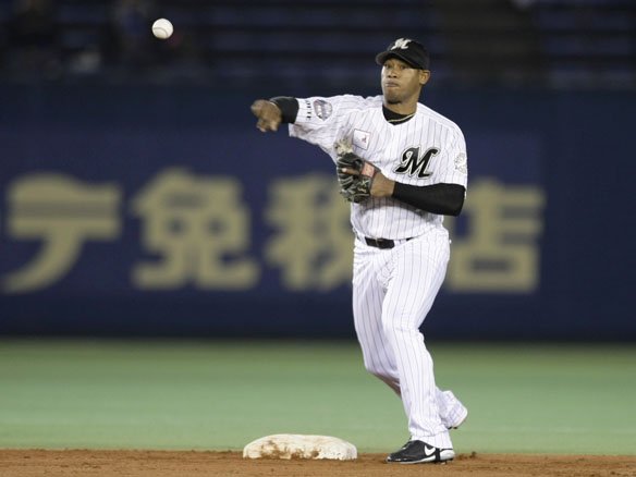 4番 ブラゼル 二直 初球を思い切り引っ張られた一二塁間への打球。セカンド・オーティズが食らいつき、ダイビングキャッチ! |