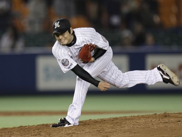 投手 渡辺俊 渡辺俊、中村に二塁打を許しましたが、西岡の超ファインプレーにも助けられ、進塁を許さず! |