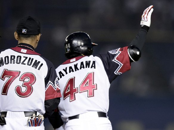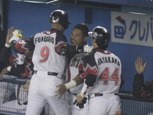 西岡が粘りを見せましたが、MICHAELの前に3者凡退に倒れてしまい、ヒット数は両チームとも11本ながら、反撃及ばず、ファイターズに2連敗。今季初めてファイターズに負け越しとなりましたが、連戦を乗り切るためにも明日は借りを返したいところです。 |