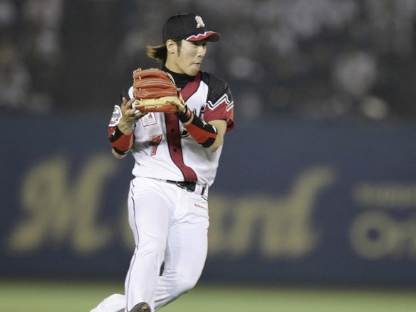 9番 金子誠 遊ゴ 1-0から打たせ、ボテボテのゴロ。 |