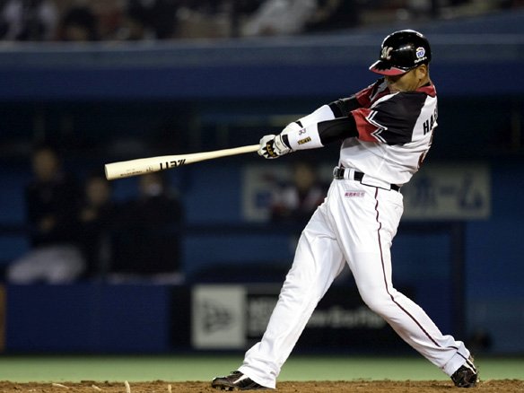 5番 スレッジ 二ゴ 1-1から打ち損ね、ボテボテのゴロ。進塁打となり、2塁ランナー・稲葉は3塁へ。 |