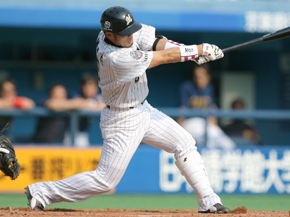 2番 根元 2-1から詰まらせながらも振り抜いたが、ファーストの正面・・・。カブレラがそのまま1塁へ。 進塁打となり、1塁ランナー・西岡は3塁へ! |