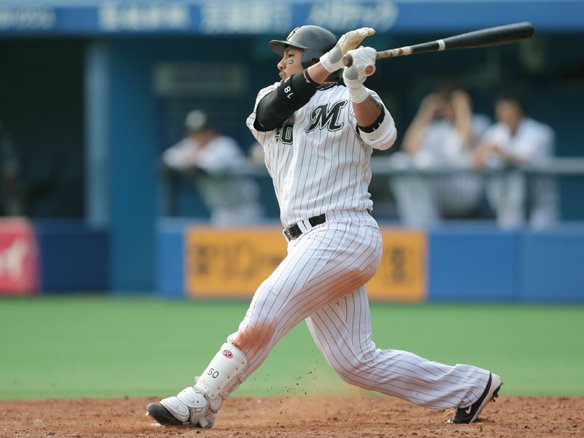 4番 ローズ 右翼安 0-1から引っ張られた鋭い打球はファースト・福浦の頭部を直撃・・・。そのままファールゾーンへ転がり、タイムリーヒットに・・・。 2塁ランナー・村松、ホームイン。0対1 ![]() 0