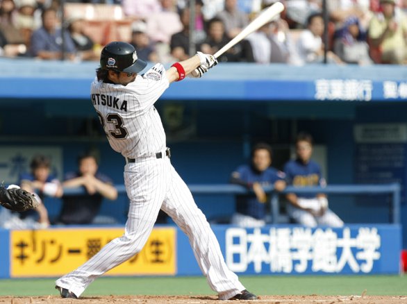2番 大塚 左翼二 1-1から思い切り引っ張った打球は、飛び込んだサード・塩崎の横を抜けた! 3塁ランナー・ベニー、ホームイン!2対6。 ![]() 2
