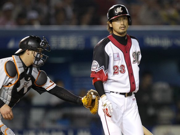 6番 ゴンザレス 左安 初球、アウトコース低めの変化球でバットを粉砕したが、振り抜かれ、三遊間ショートの横を抜かれた・・・。 3塁ランナー・小笠原、ホームイン。5対8。 ![]() 8