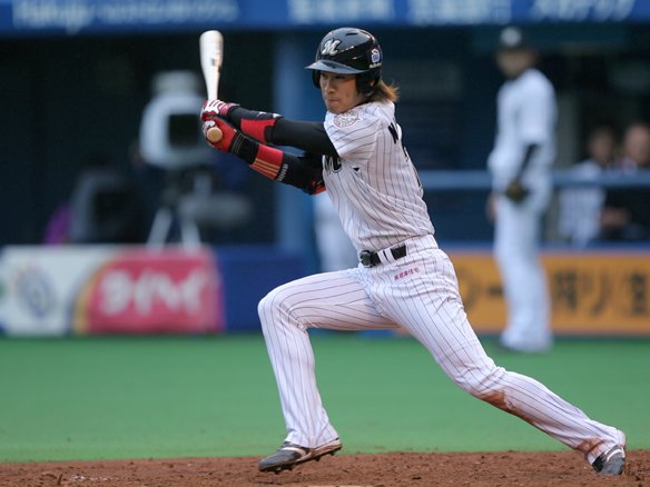 4番 サブロー 左安 1-1からジャストミートし、レフト前へのクリーンヒット! |