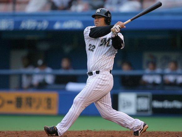 3番 里崎 2-2からの7球目、アウトコースの球に逆らわずに弾き返し、二遊間を抜いた! |