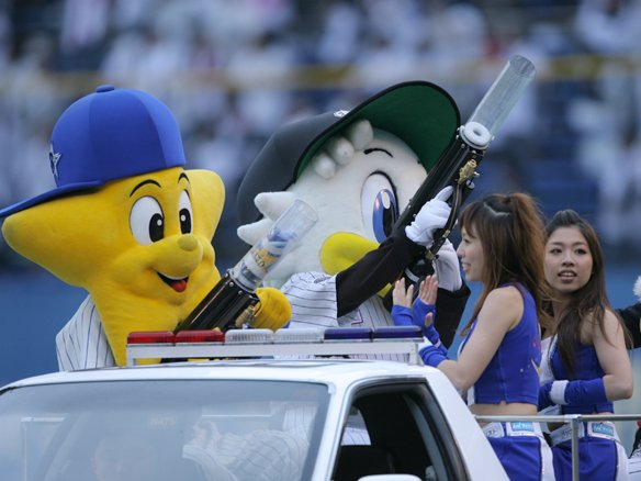マーくんとホッシーがスタンドにバズーカーを打ち込む