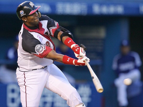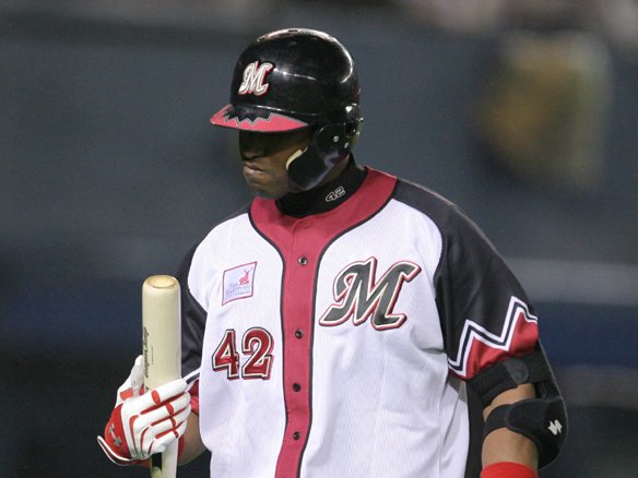 3番 タイロン・ウッズ 右安 2-2から高めのストレートを弾き返され、一二塁間を破られた・・・。 |