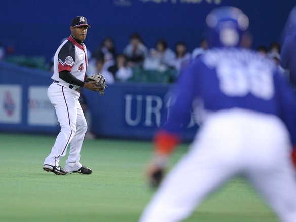 (千葉ロッテ 1塁ランナー・堀→代走・田中雅) |