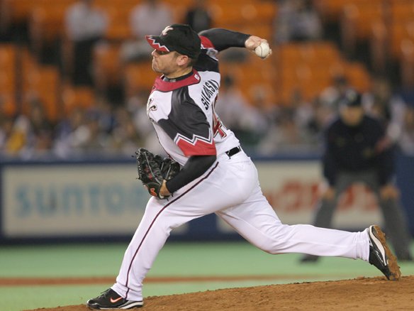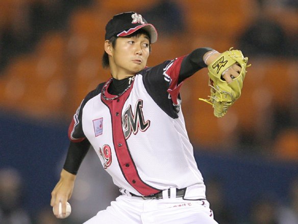 投手 チェン 2死満塁のチャンスを迎えましたが、抜ければ走者一掃のタイムリーとなった里崎の当たりは、昨日のリベンジとばかりに和田の好守に阻まれ、得点を奪えず・・・。 |